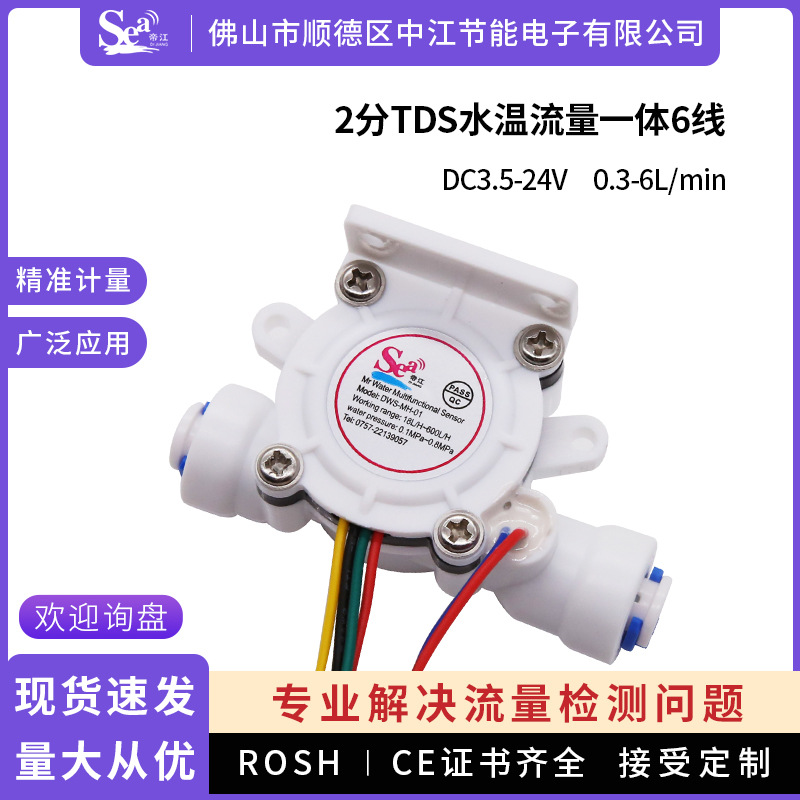 ホール式水流量センサー 2分3分給水機 TDS 温度流量一体型マイクロ水流量計