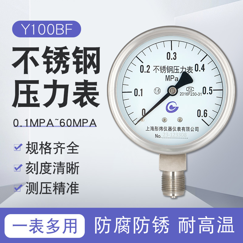 ステンレス圧力計上海yy100bf防腐防錆気圧水圧油圧真空計ラジアル軸方向