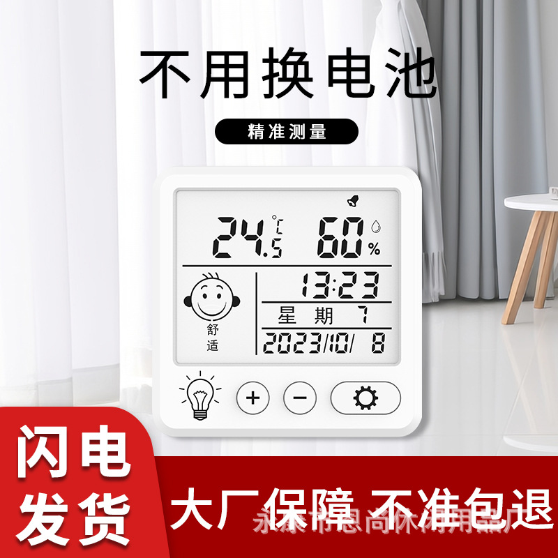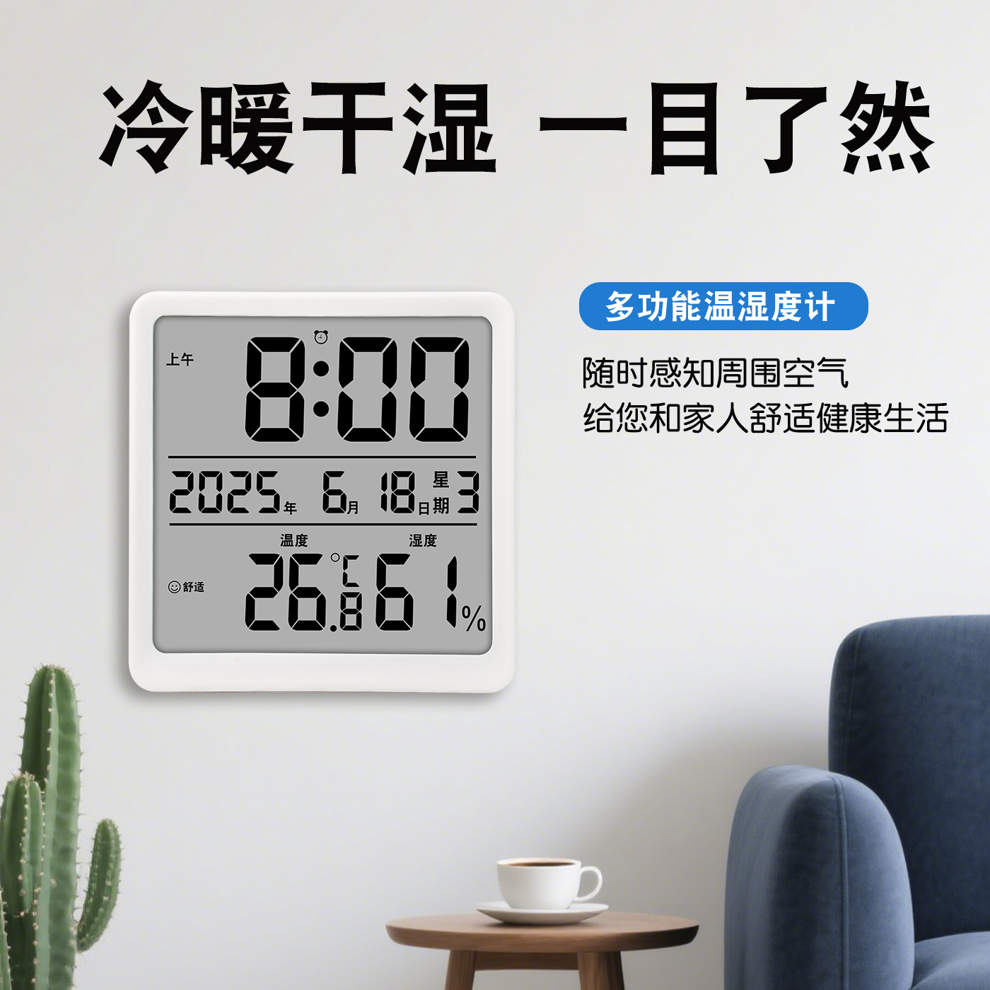電子湿度計家庭用高精度室内壁掛けベビールーム気温表示温度湿度計目覚まし時計