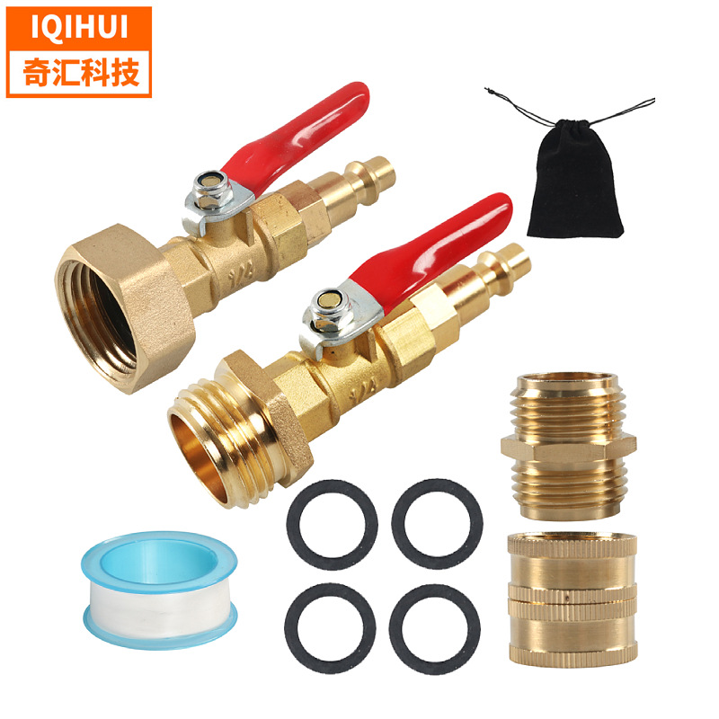 国境を越えたトレーラーねじ真鍮継手セット1/4ボールバルブ付きガーデン散水防止アダプタクイック継手