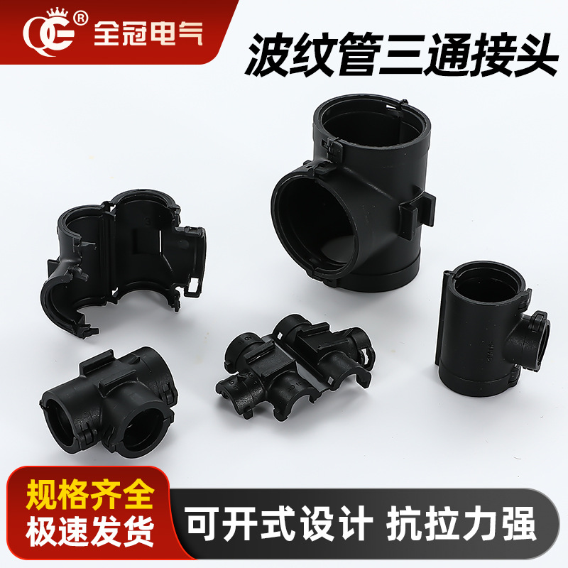 プラスチックナイロン波形パイプ開閉式三方T型自動車ワイヤーハーネスバックルPA6環境に優しいナイロンパイプ分流ジョイント