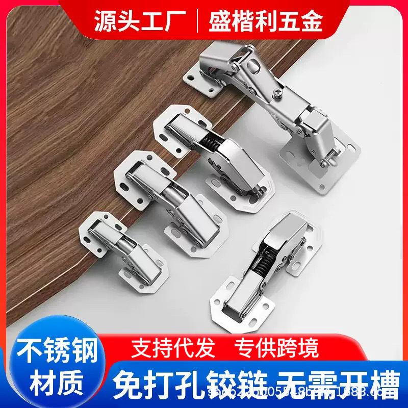 穴なしステンレス鋼キャビネットドアヒンジスプリングヒンジワードローブハードウェアダンピング油圧緩衝折りたたみメーカー