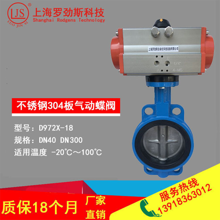 ステンレス304板エアバタフライ弁エア対バタフライ弁D972X-18 304ステンレス対バタフライ弁