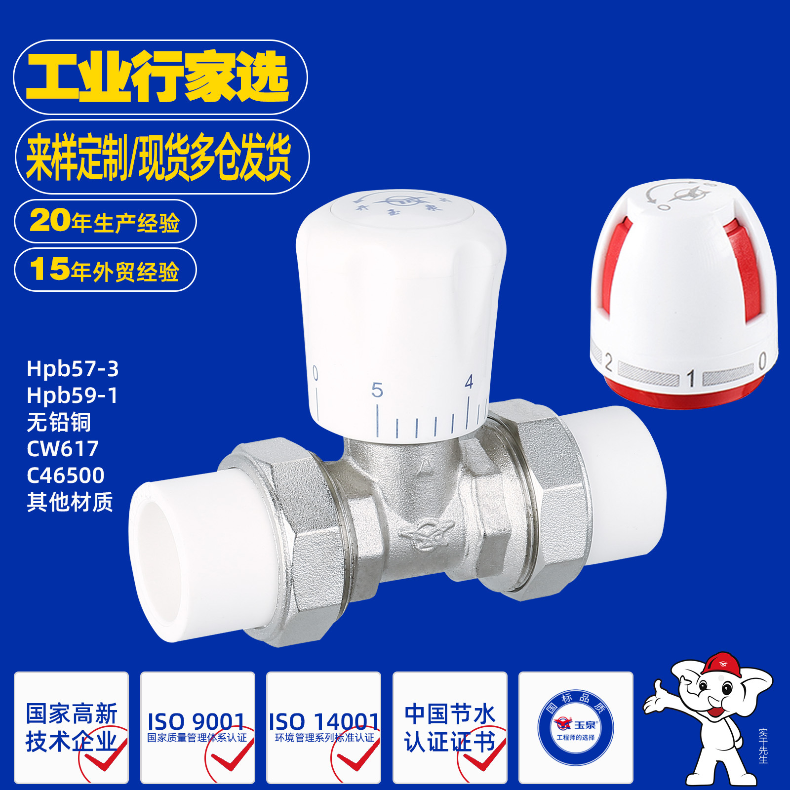 自動温度調節弁 PPR両頭継手 直型温度調節弁 真鍮製二重熱溶接 HVAC専用調整弁 在庫あり