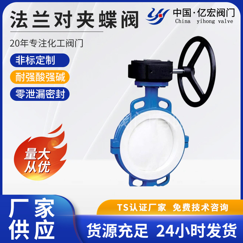 フランジバタフライバルブ D341F4-16C フッ素ライニングバタフライバルブフランジ接続ウォームギア手動ライニング PTFE バタフライバルブソースメーカー