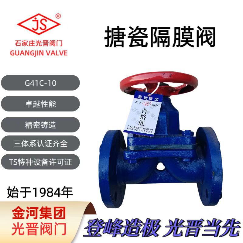 光晋バルブエナメルライニングフッ素ダイヤフラムバルブG41C-10フランジダイヤフラムバルブライニングダイヤフラムバルブ化学工業