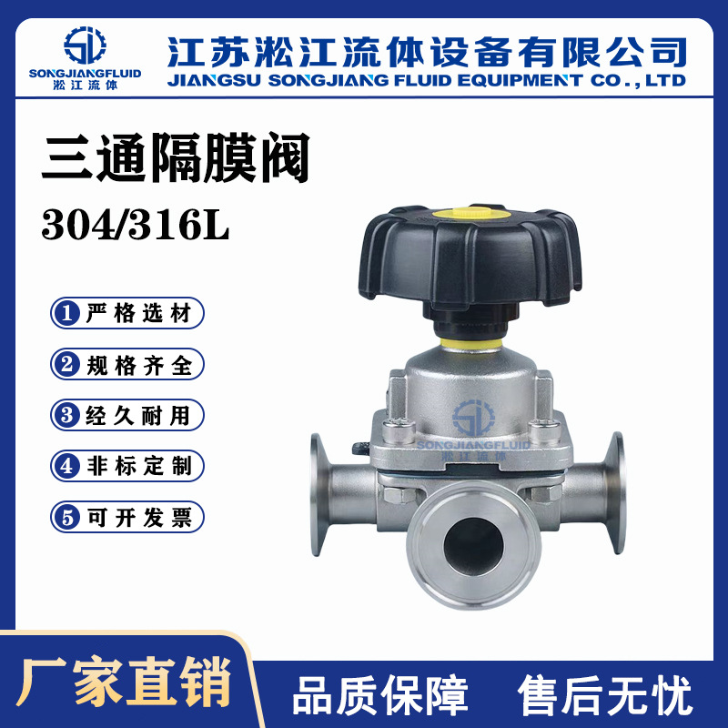 速装三方ダイヤフラムバルブステンレス316L食品級生物製薬配管交換弁二重ダイアフラム