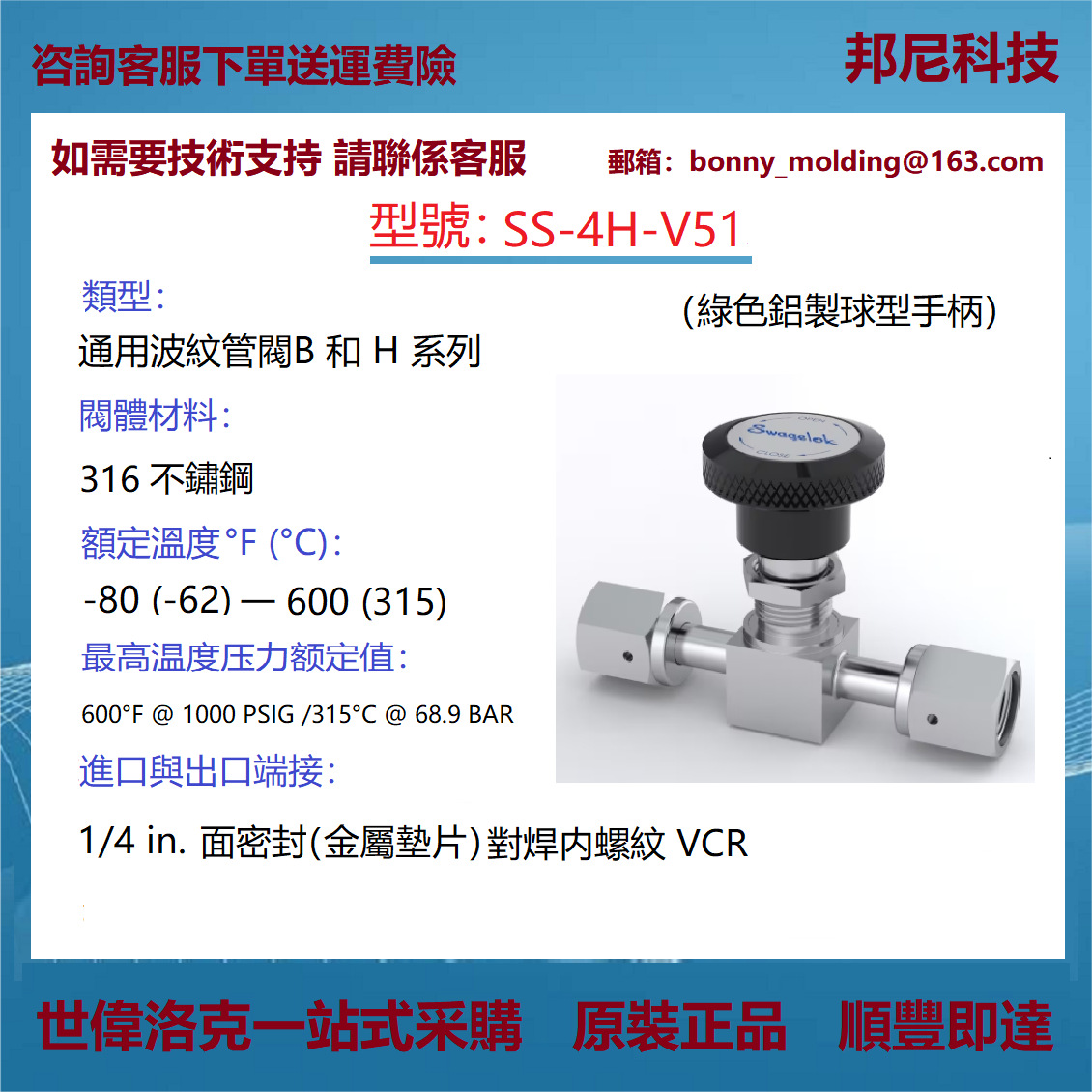 SS-4H-V51世偉ロックSwageloKステンレスベローズシール弁は溶接されて手動で実行された