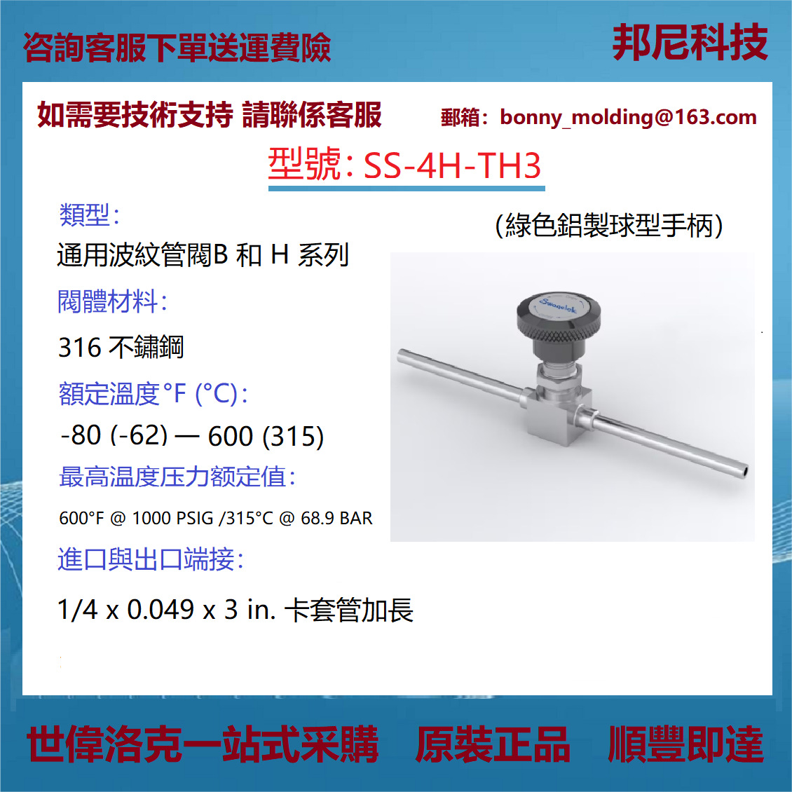 SS-4H-TH3世偉ロックSwageloKステンレスベローズシール弁Hシリーズ手動実行