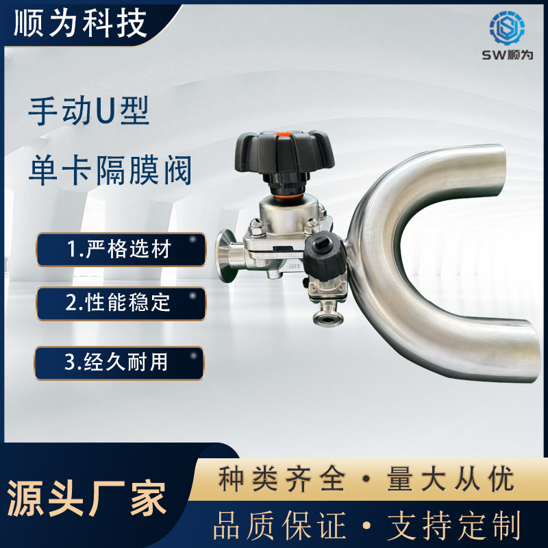 順為衛生製薬級ステンレス316L手動u型三方単カード快速溶接式ダイヤフラムサンプリング弁