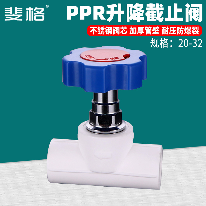 厚さppr水道バルブ昇降式ストップバルブ20 25 32 4/6分1インチスイッチスプール水道部品