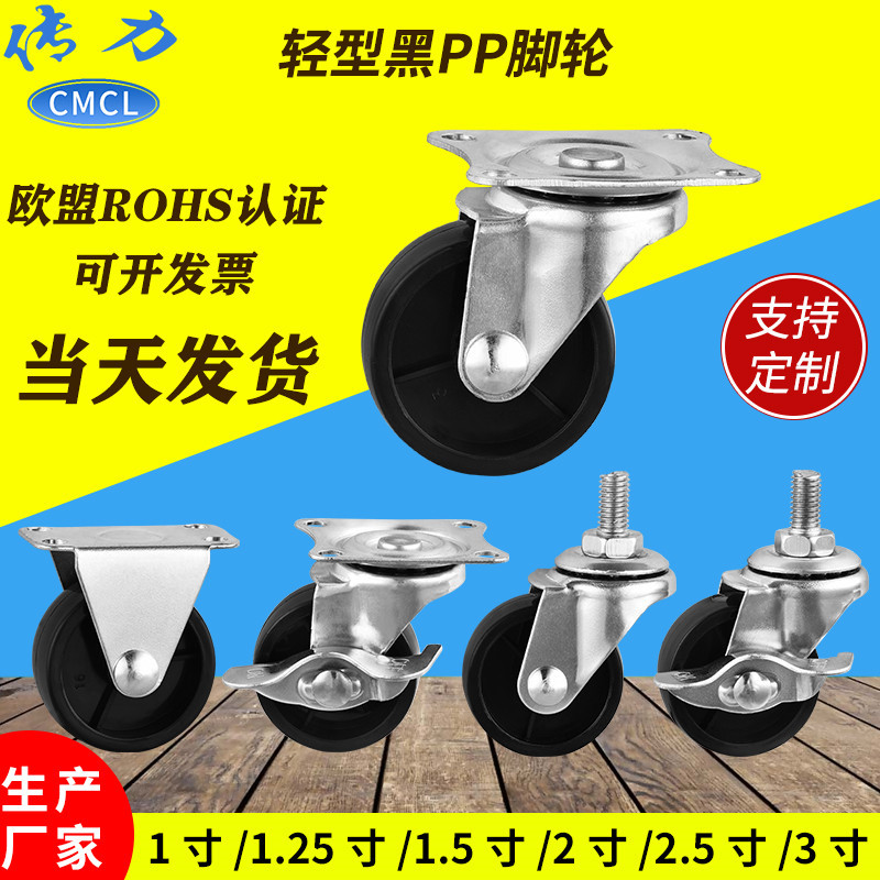 黒色PP万向輪 軽量M8ネジ式キャスター 展示棚 収納ラック 小型カート万向輪