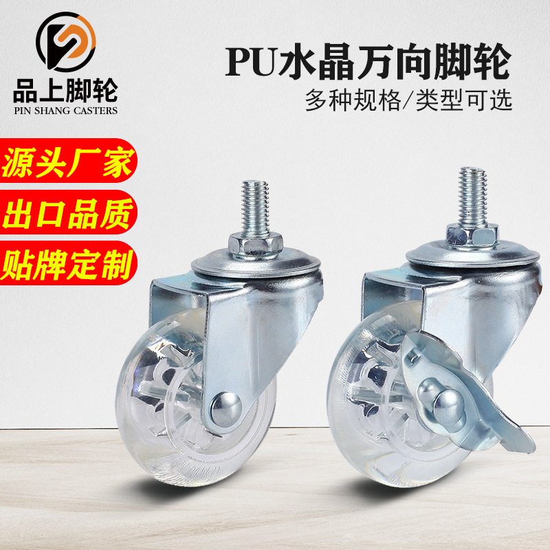 2インチ軽量ネジ透明水晶万向辺ブレーキキャスター軽m 8家具家庭静音ppナイロンキャスター