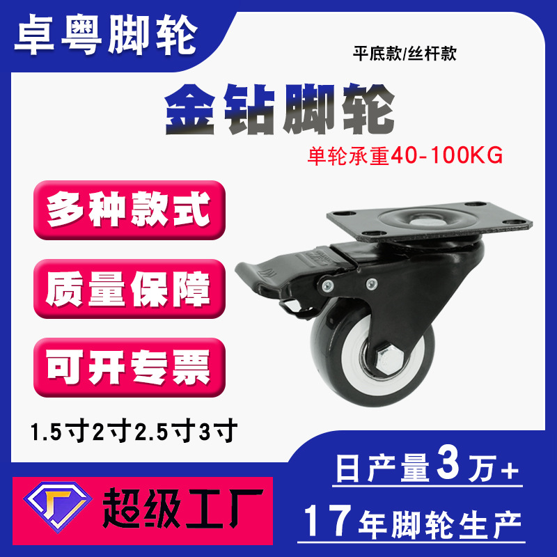 万能車輪メーカー卸売り1.5インチ2インチスクリューブレーキ工業家具脚輪滑りゴム金ドリル輪