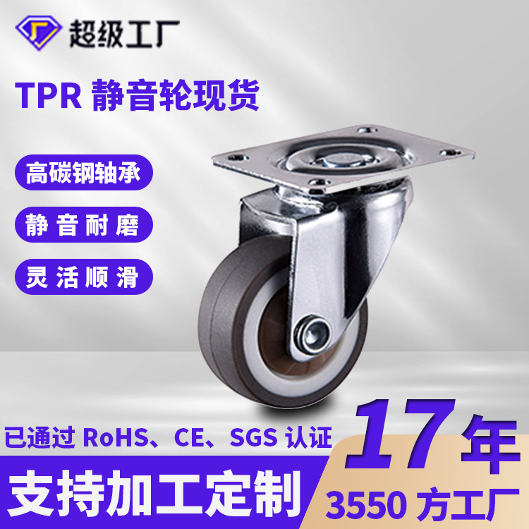 重型耐摩耗静音二軸工業キャスター5インチ6インチプラスチックゴム回転輪方向性車輪