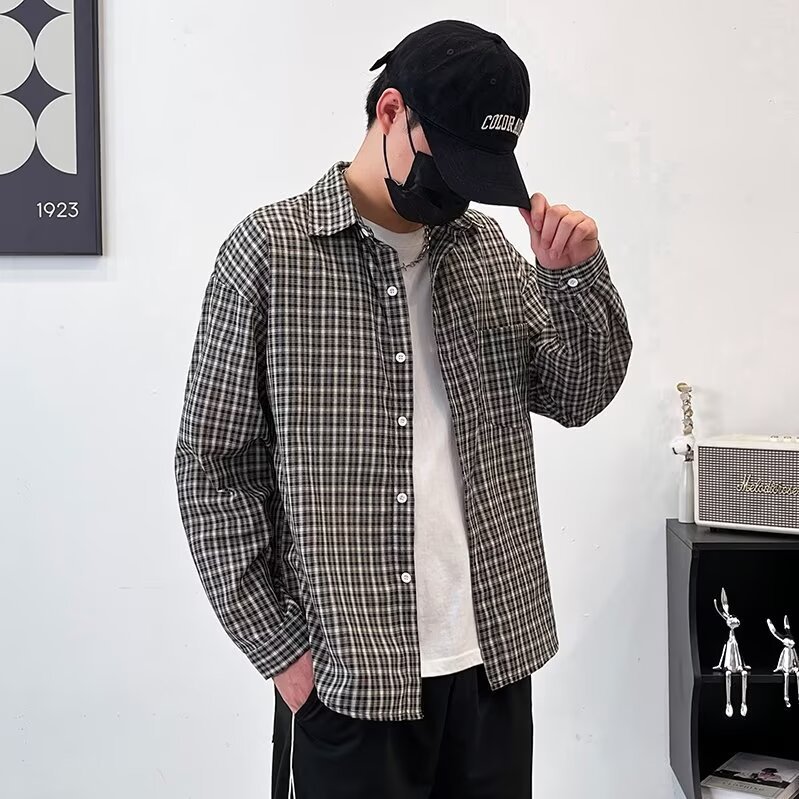 XC340 # 自宅図P26オリジナル生地チェックシャツM-3XLカーキブラック