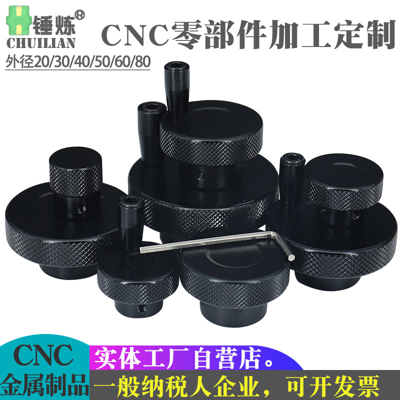 黒いつまみのエンボス加工手の輪の丸い手の輪のローラーのレースのスライドのスクリューの機械の部品のトップの糸の回転の取っ手
