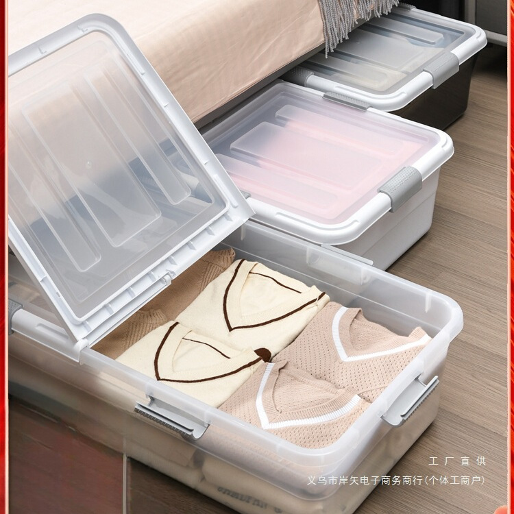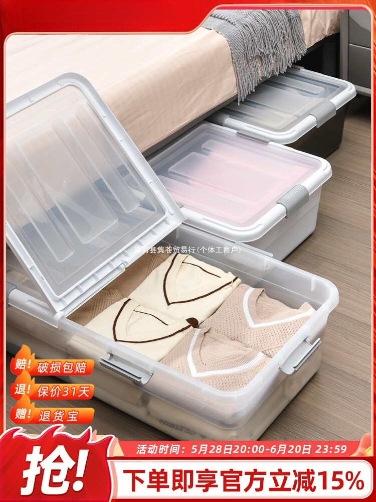 ベッド下収納ボックス ベッド下収納アーティファクト プーリー付きフラット 大容量 特大透明衣類寮収納ボックス