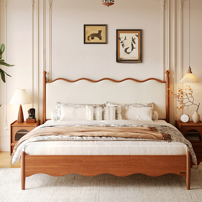 佛山家具フレンチレトロダブルベッド米寝室ベッドフレーム無垢材脚ヘップバーンスタイルリップルベッド工場クロスボーダー
