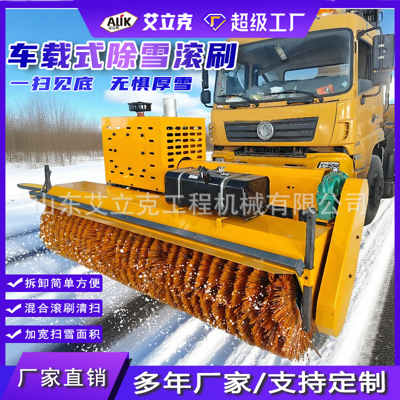 機載式ローラーブラシ除雪機、路面清掃車両に除雪ブラシを装備、大型取り外し可能な除雪ローラーブラシ