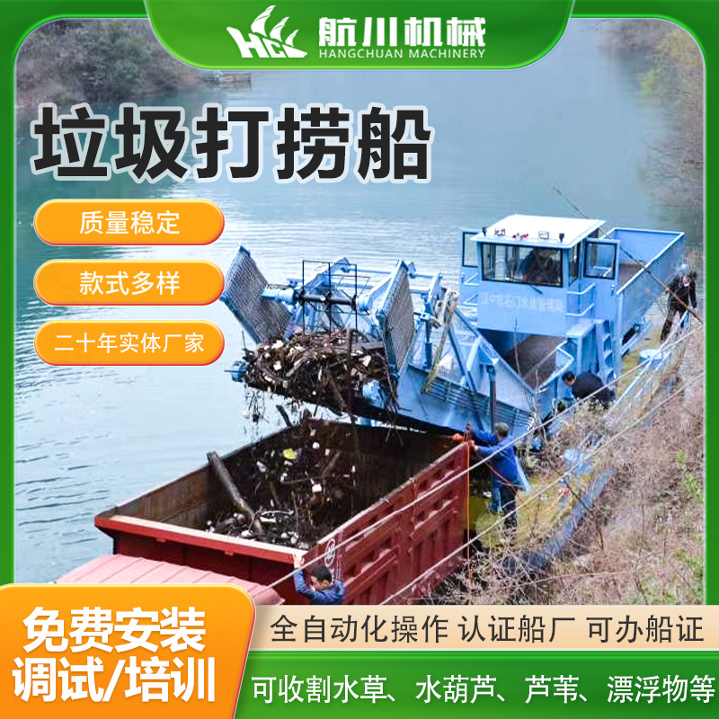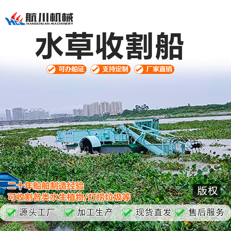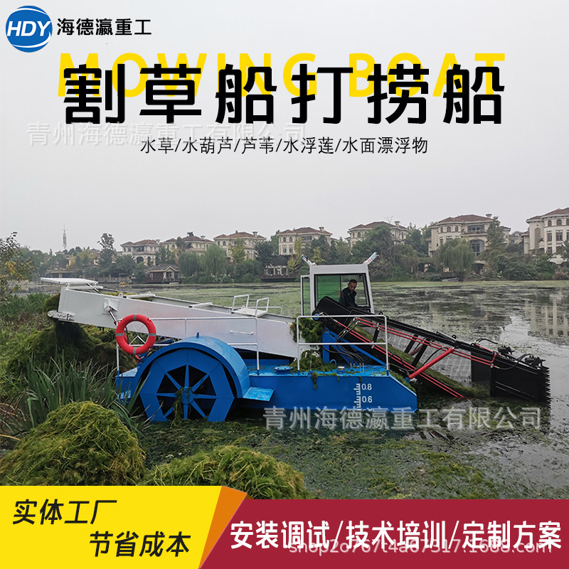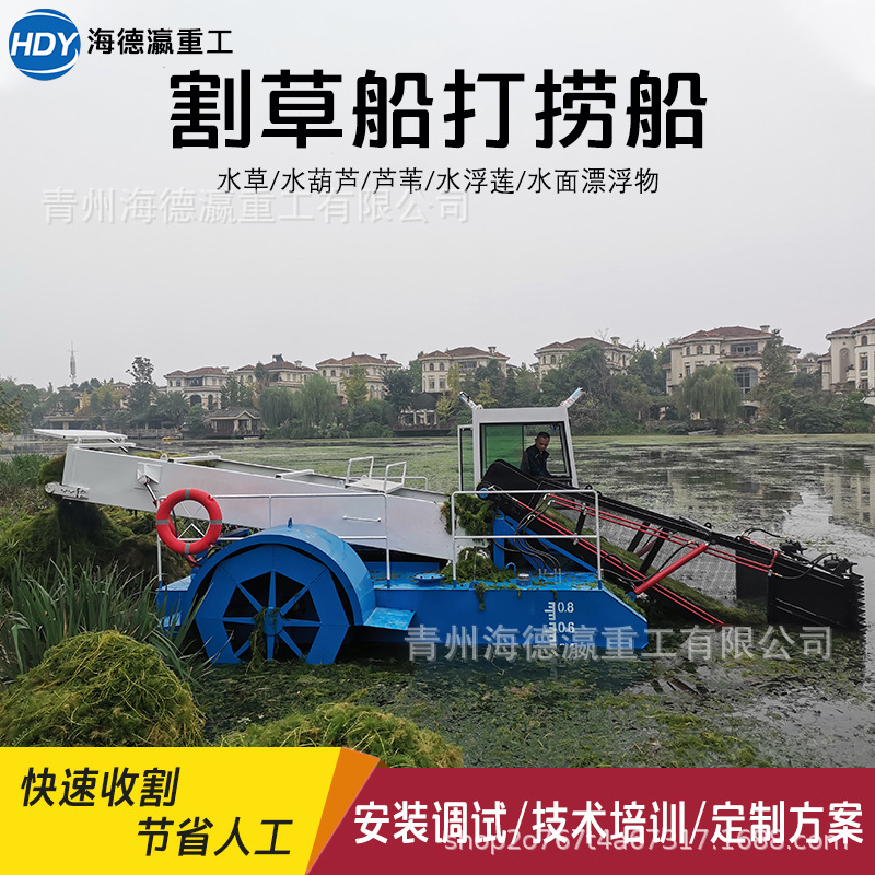 広東省全自動ウォーターヒヤシンス回収船、ダム清掃水蓮、江蘇省水陸両用芝刈り船