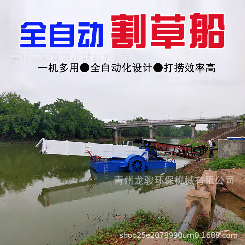 半自動水上ゴミ回収船、全自動川水草・ウォーターピーナッツ収穫装置、芝刈り船