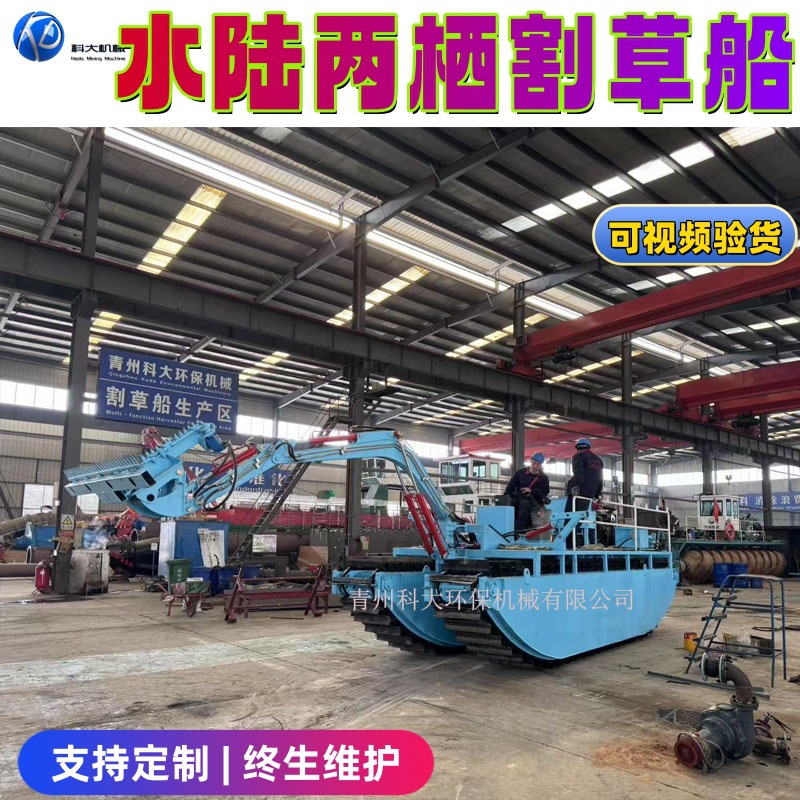 水陸両用芝刈り船、貯水池、湖、葦収穫船、クローラー全自動水陸両用機器