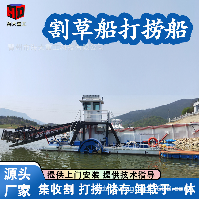 湖南貯水池水中芝刈り船 湖北大型スリーインワン清掃船 全自動収穫船