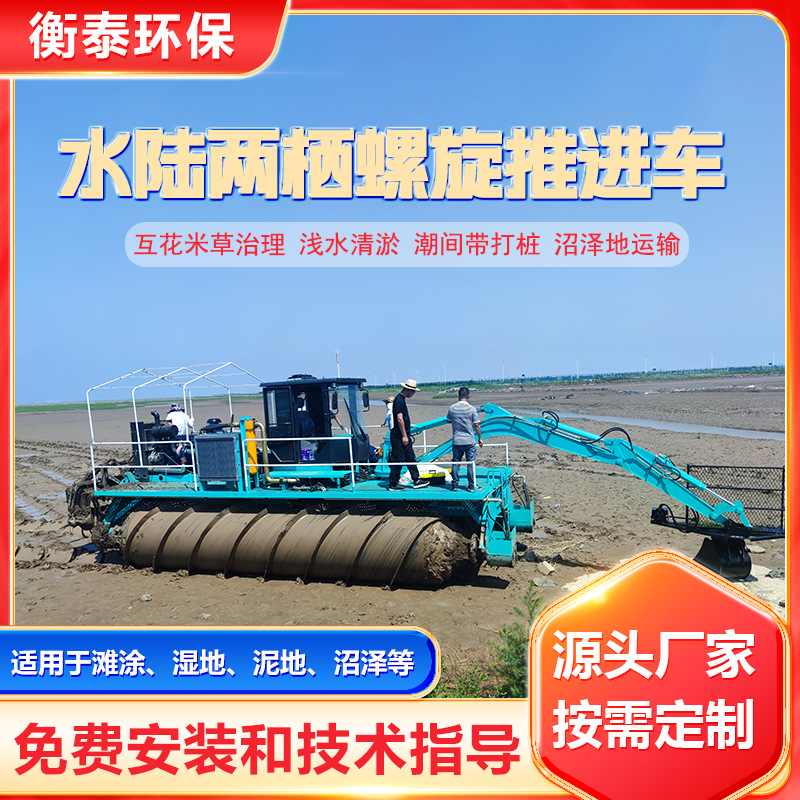 水陸両用スパイラル杭打ち装置 治理潮湿地帯清掃船 水陸両用スパイラル芝刈り船