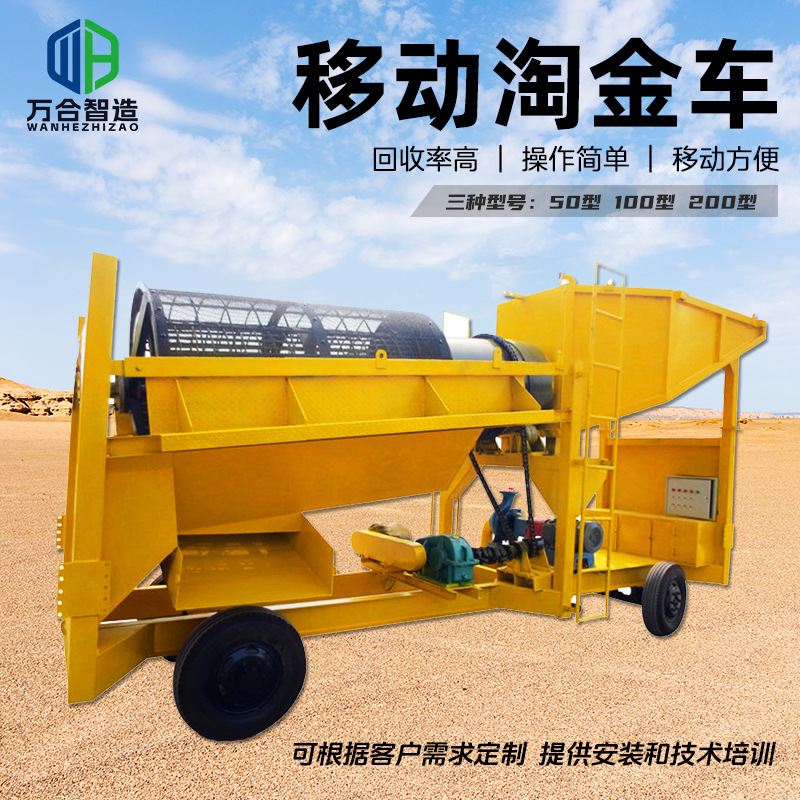 移動式車輪付き乾式河川金選別機 全自動運転ドラム金選別装置 アフリカ移動式金選別車