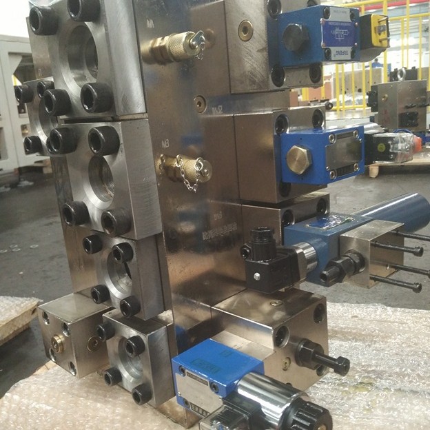 山東泰豊HTL4900-4-18、500T普通型射出成形機、圧力弁板にPQ弁を取り付ける