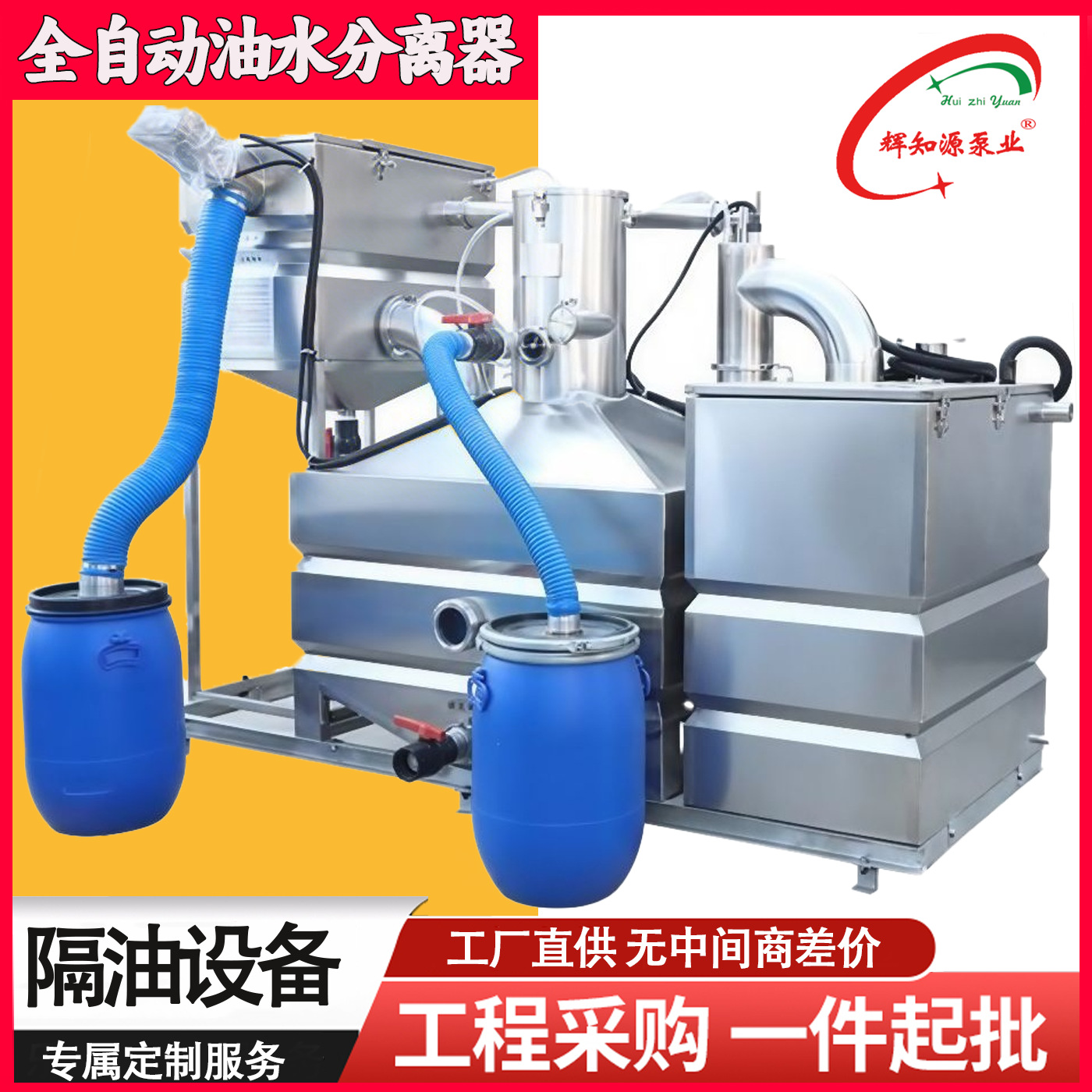 全自動一体型油分離・上昇装置 ステンレス製 ホテル食堂厨房残渣油分離・排水装置工場