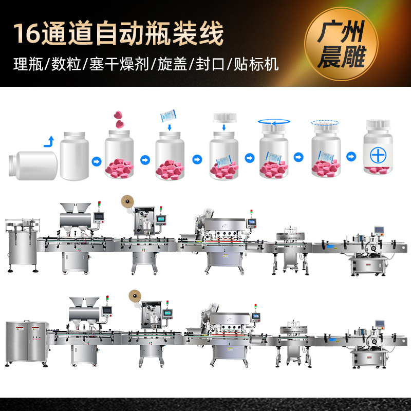 16チャンネルカウントボトリング生産ライン錠剤およびカプセルボトリングカウント生産ラインソフトカプセル自動ボトルライン