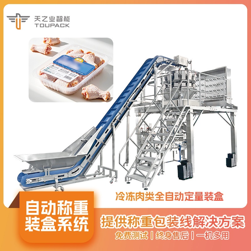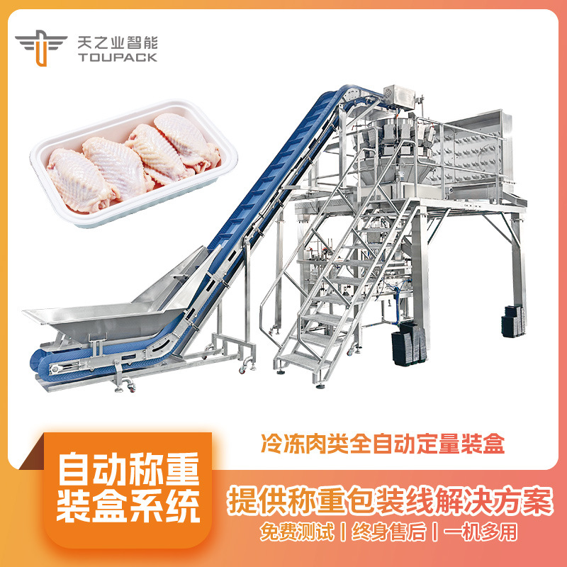 冷凍食品充填および箱詰めライン 鶏の手と鶏の足の計量および箱詰めシステム ペットフード缶詰機
