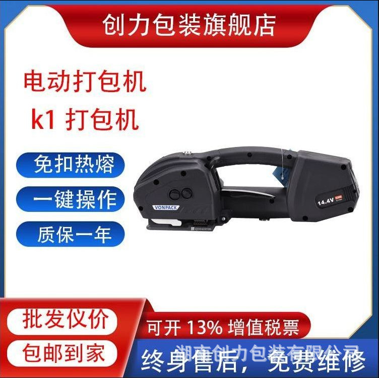 K1 電動梱包機ポータブル PET プラスチックスチールベルト PP 梱包ベルトバックルフリーホットメルト梱包リチウム電池梱包機