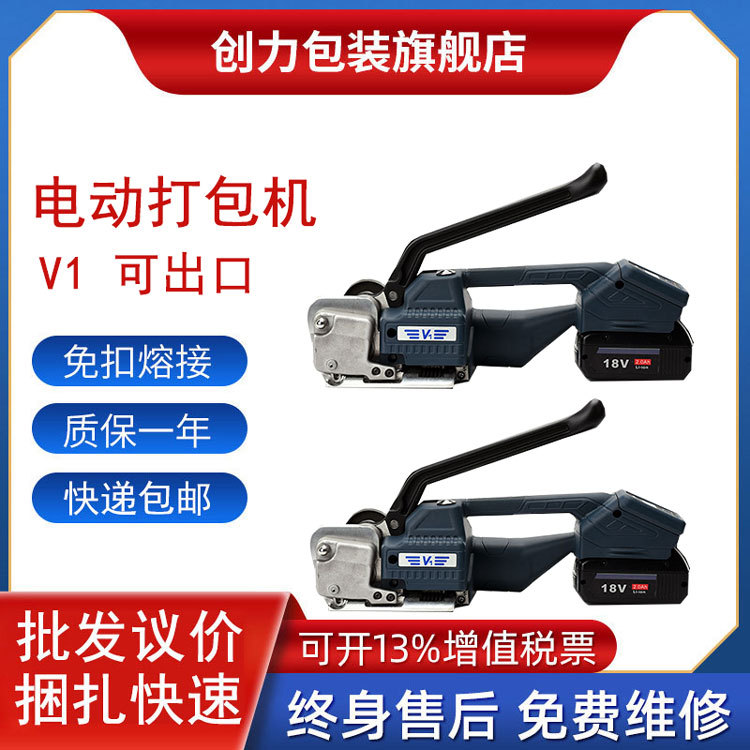 V2梱包機ポータブルプラスチック鋼帯全自動結束機pet ppベルト蓄電式ホットメルト電動梱包機