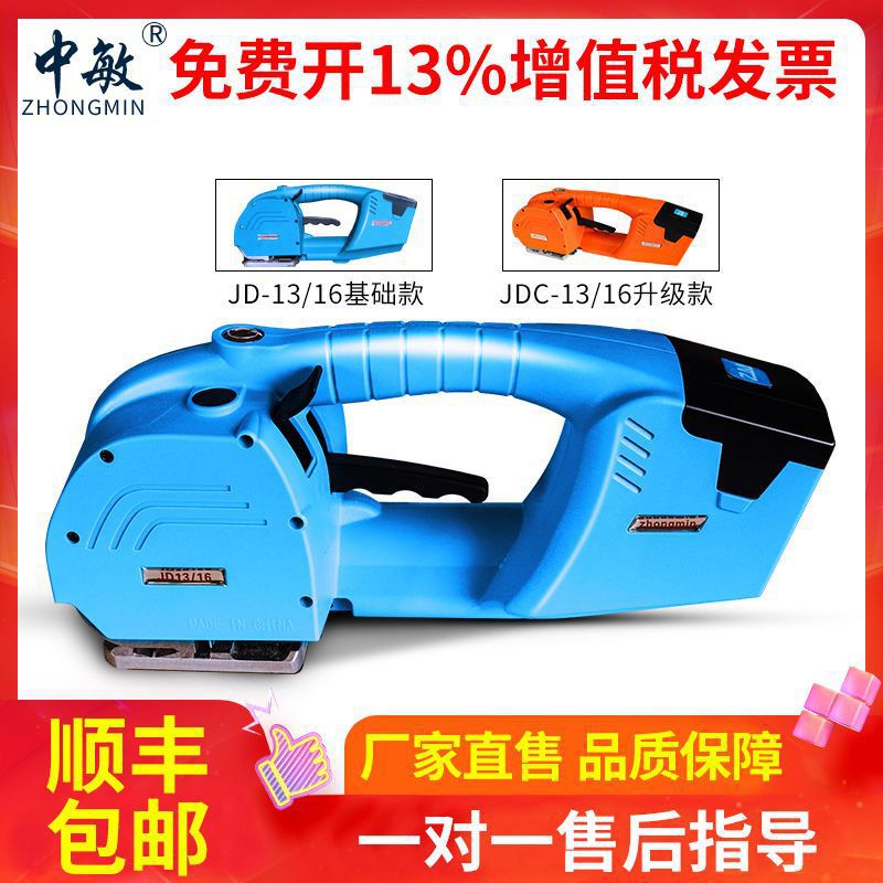 Zhongmin JD13/16 ポータブル電動梱包機全自動プラスチック鋼ストラップペットストラップホットメルトバックルフリープp テープ