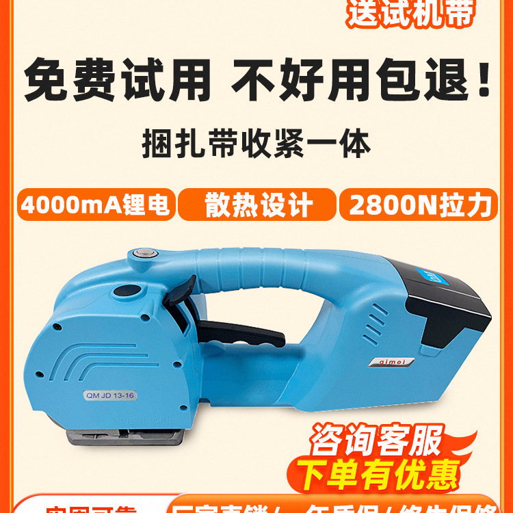 送料無料 Qimei QM-JD13/16 ポータブル電動梱包機バンド締め付け一体型 PET プラスチックスチールバンド PP