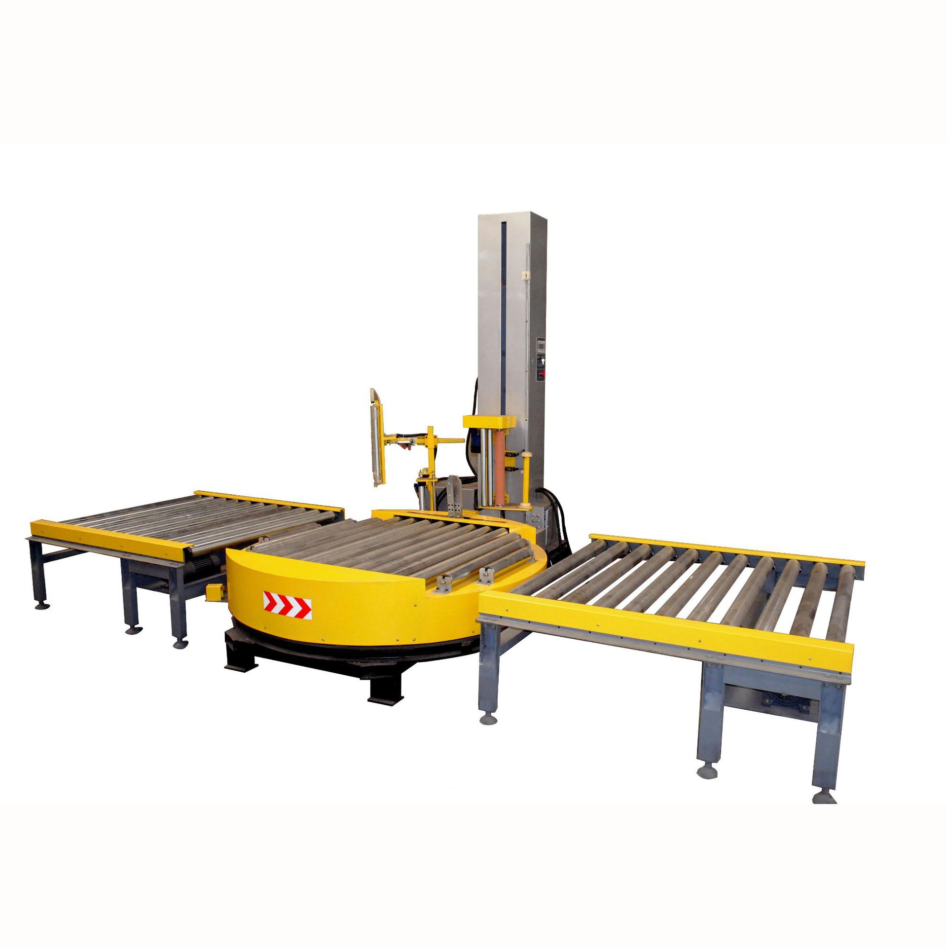 T2000A 全自動オンラインターンテーブル木製パレット線巻き機に事前に延伸されたチェーン駆動ライブローラーターンテーブル
