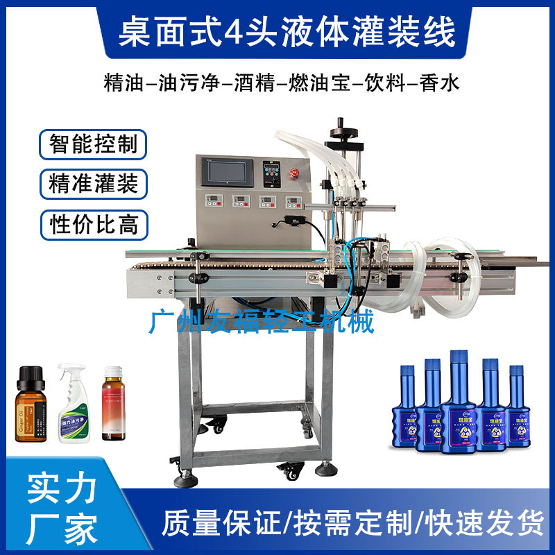卓上型液体充填機 オイル汚れ洗浄剤 エッセンシャルオイル 燃料宝 口腔液 4ヘッド昇降式充填機 磁気ポンプ