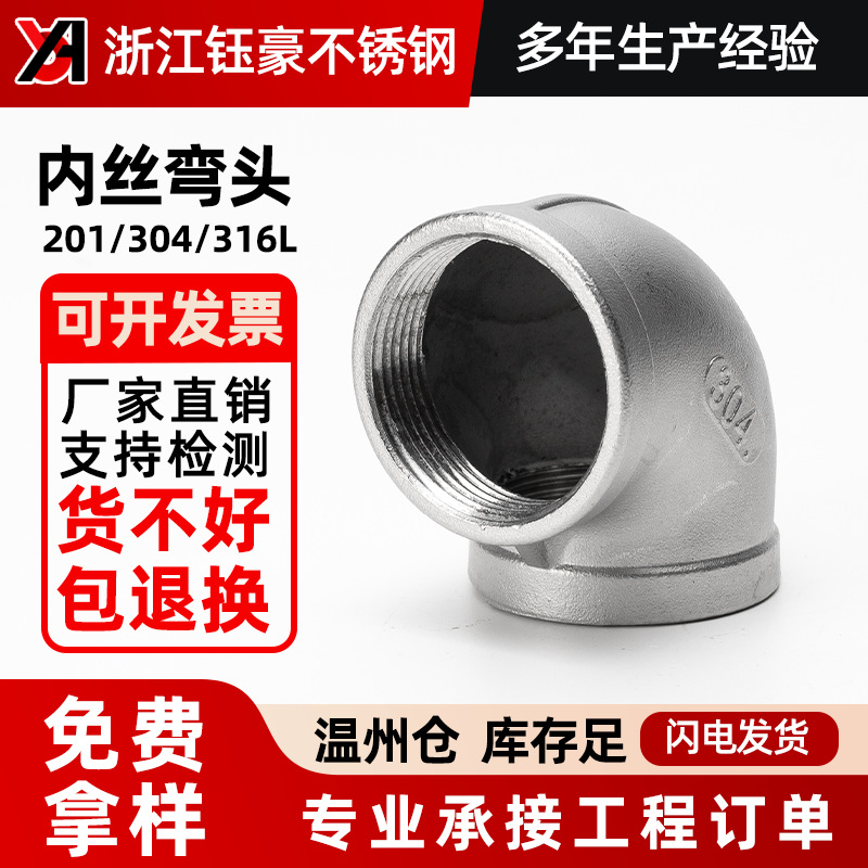 望特304ステンレス鋼糸ボタンエルボ90度内糸鋳造316内ねじ4分内歯曲げ直角継手