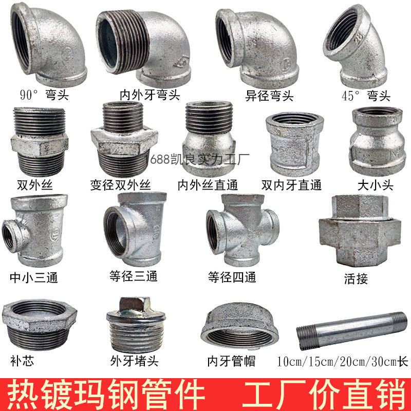 亜鉛メッキ瑪鋼管件4分水道鋼管活接大回転小インラインエルボ直通プラグ補芯三方