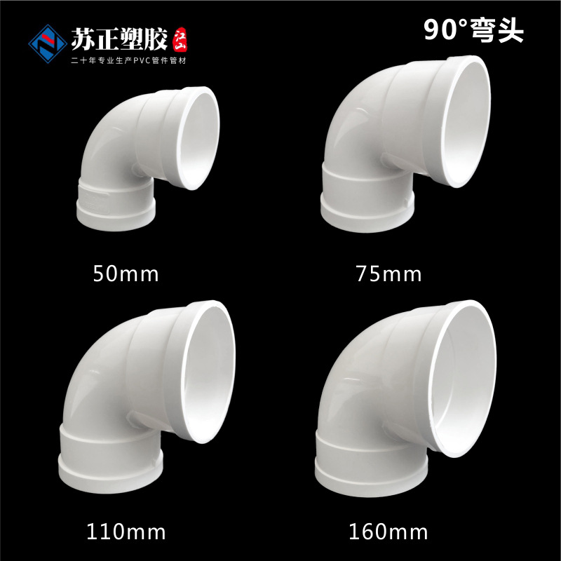 PVCエルボ排水管90度直角曲げ下水管門曲げ部品50 75 110 160 200 250