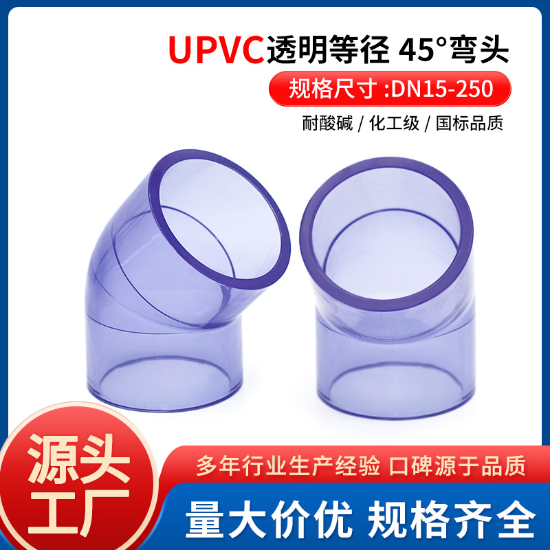 PVC透明45度エルボPVC直曲げ半曲げ直角等径エルボ透明継手プラスチック給水継手