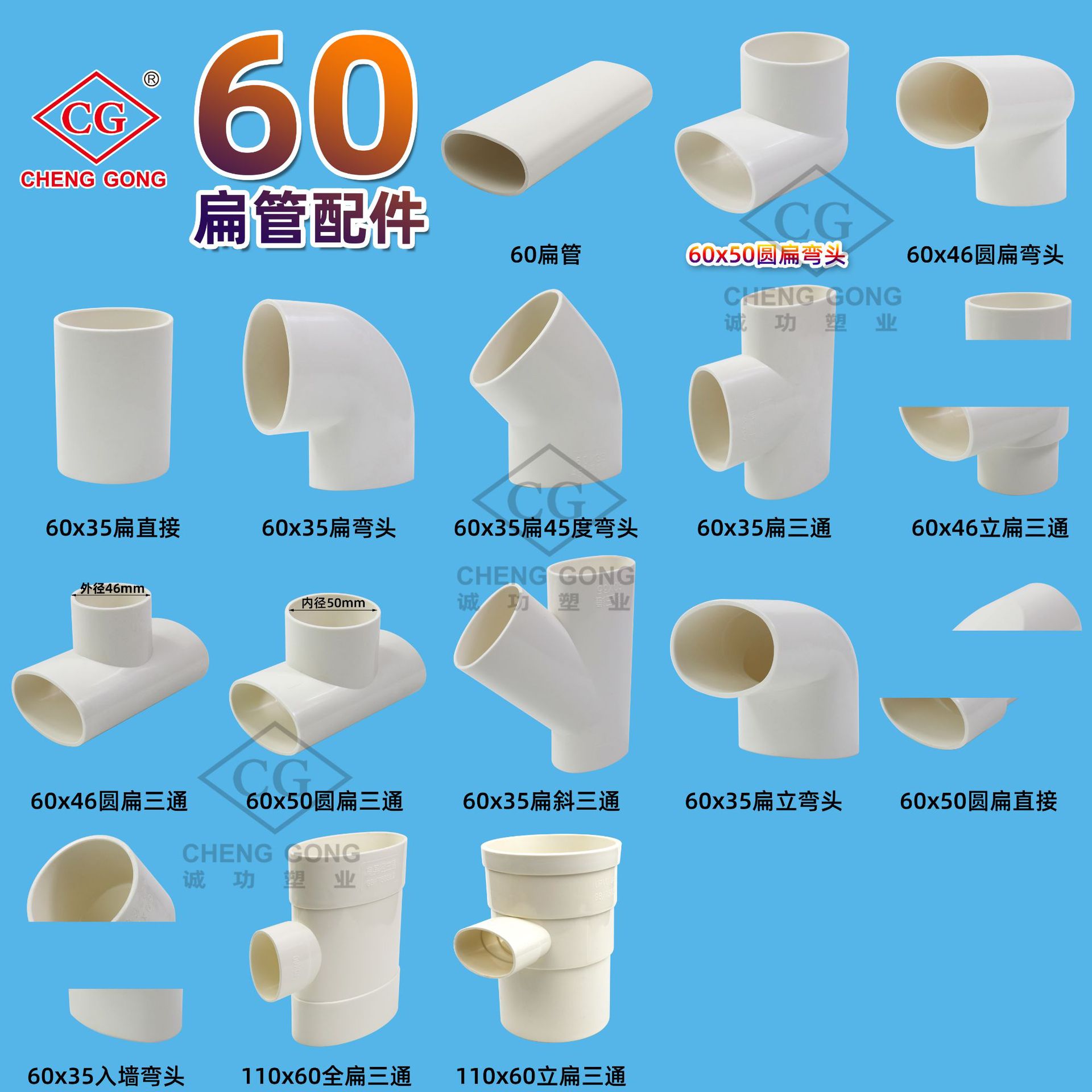 60x35平管部品PVCプラスチック各種エルボ三方直継手全シリーズが完備している