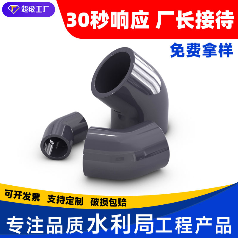 PVC45 ° 給水管用厚肉エルボ、耐酸アルカリ性化学排水管継手、20-75mm、45度エルボ
