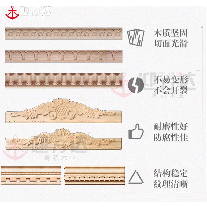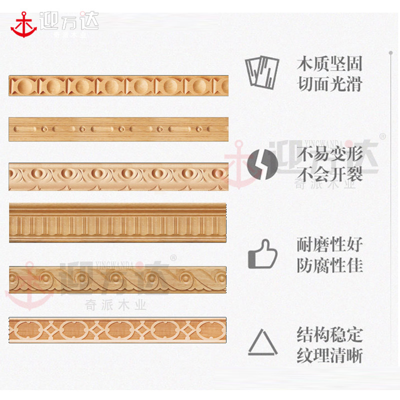 無垢材の線材家具装飾、彫刻された飾り板、テーブル、椅子、ドア、キャビネット、木彫りの囲い板、腰線、縁取り、柔らかいブナ材