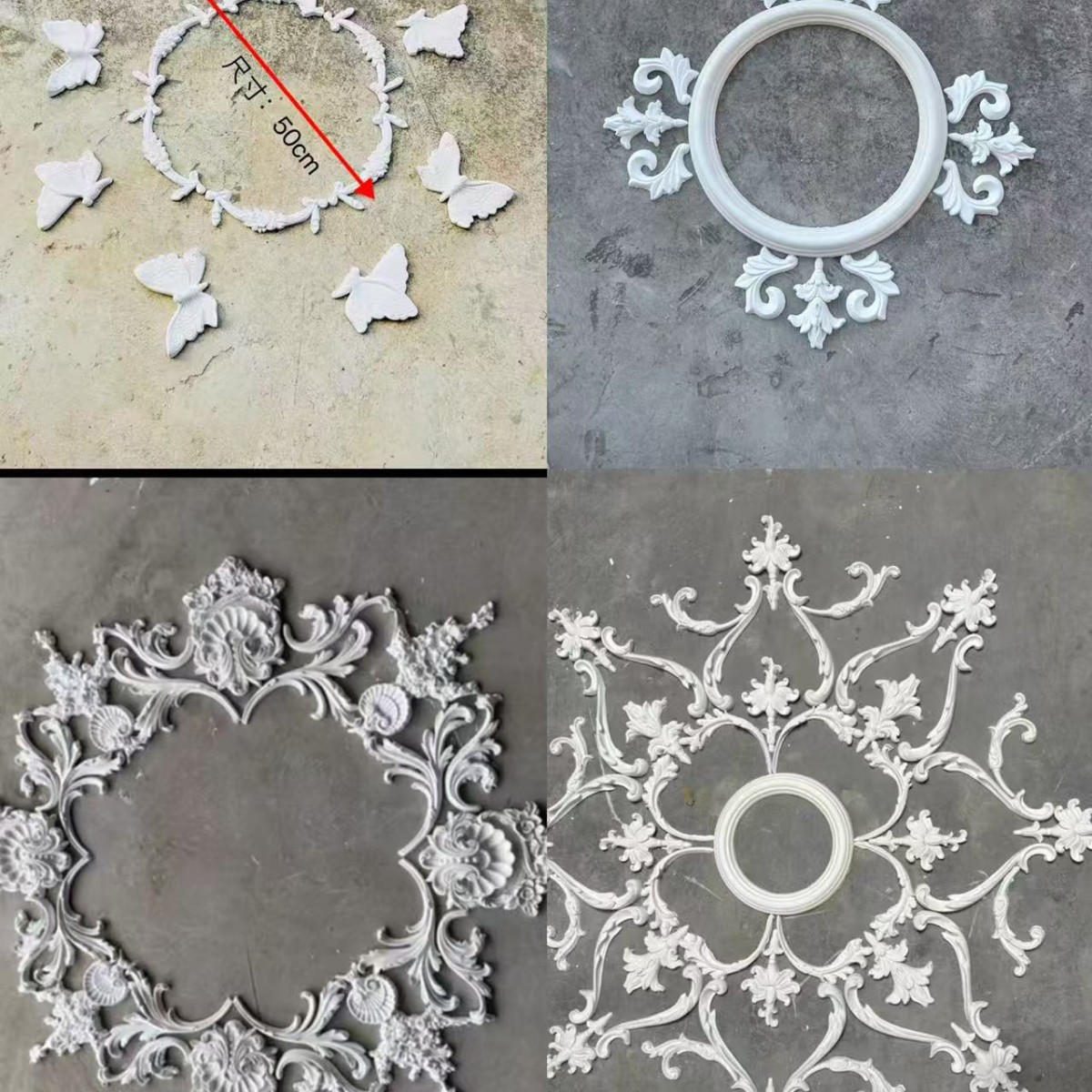 ♡ フレンチスタイル PU ライトパネル天井装飾樹脂寄木細工のランプホルダーラウンド彫刻ランププール模造石膏ランプホルダー天井