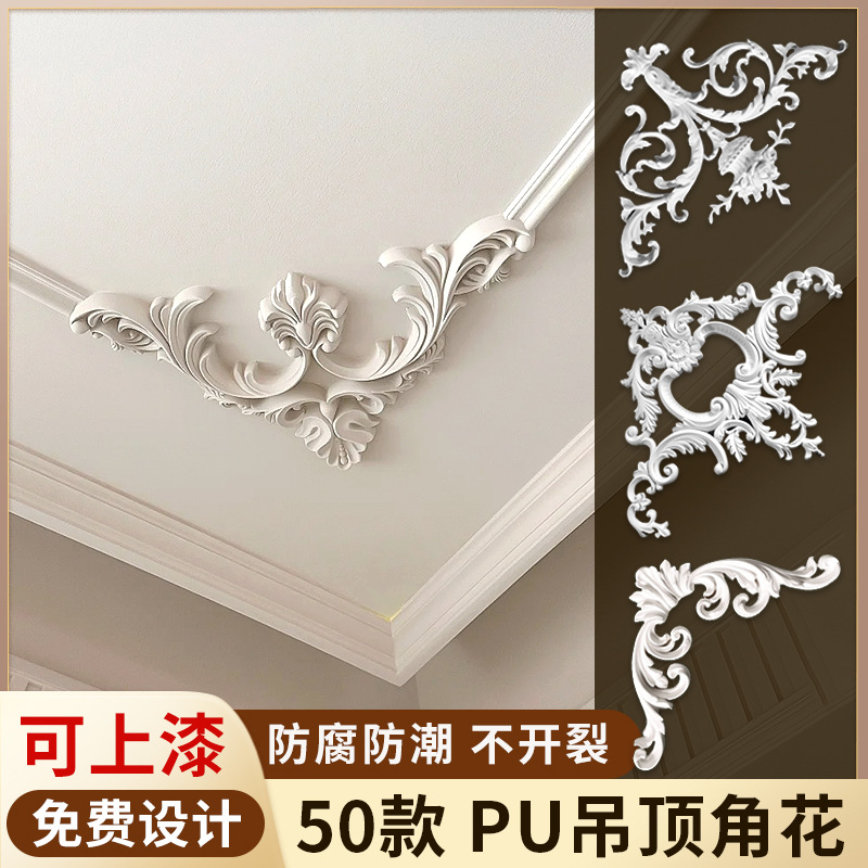 フレンチPU天井コーナーフラワーライン石膏コーナーフラワーヨーロピアンスタイル天井彫刻天井コーナーフラワーシェイプ装飾