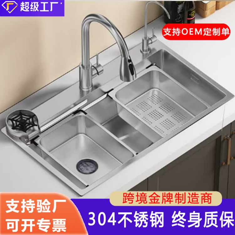 シングルステンレス鋼水ダブル 3 ストラップキッチンシンク洗面台シンクシンク家庭用手作りサプライチェーン
